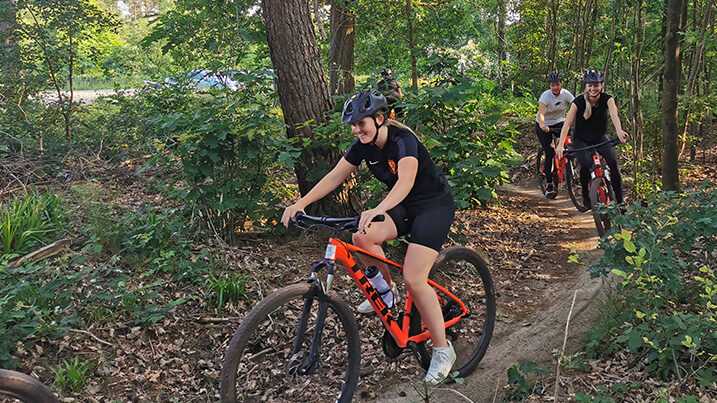 Zoek je meer uitdaging? Kies dan voor de mountainbike. Zandafgravingen, duinen, bossen, heide en plassen zijn het decor van de route. Na de uitleg van de mountainbike worden de helmen opgezet en kan de tocht beginnen.